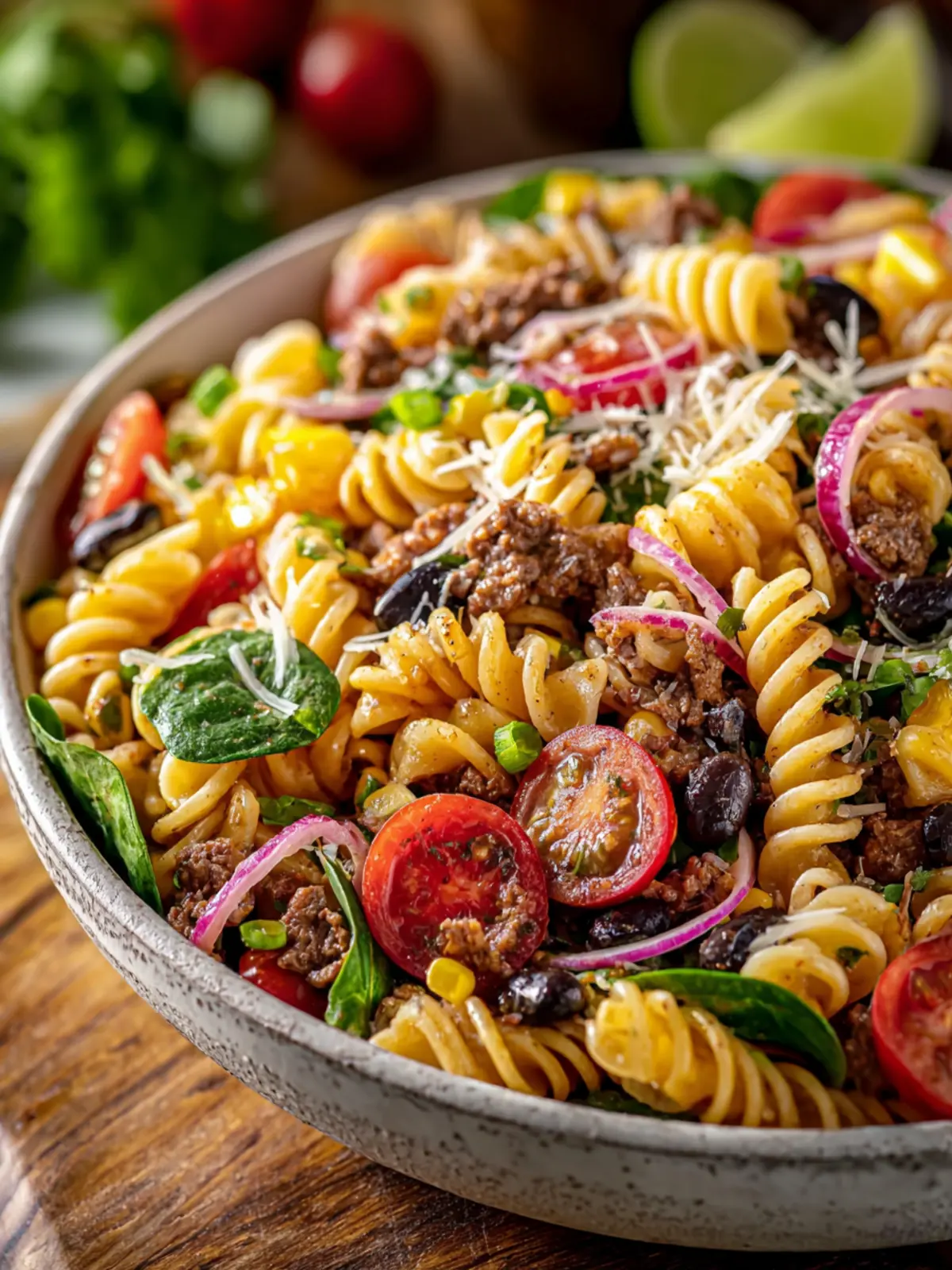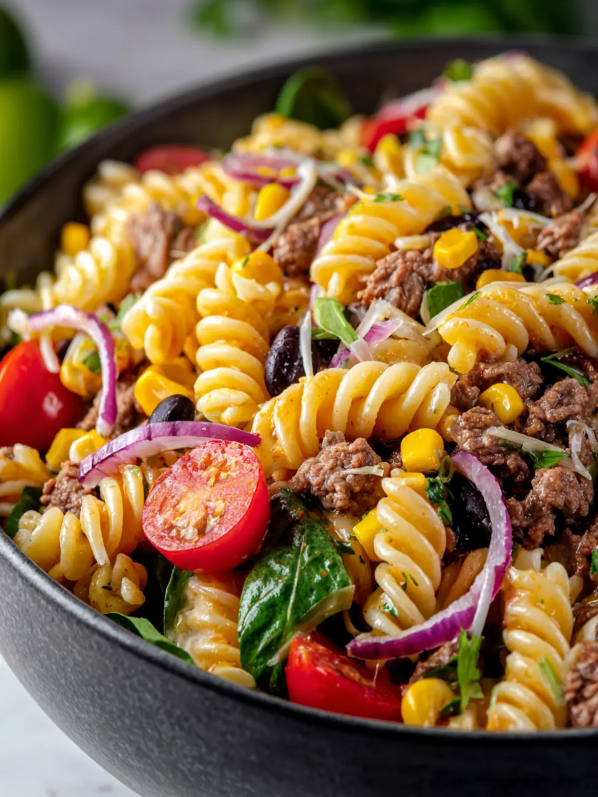 A delicious and easy taco pasta salad loaded with flavor and perfect for gatherings!