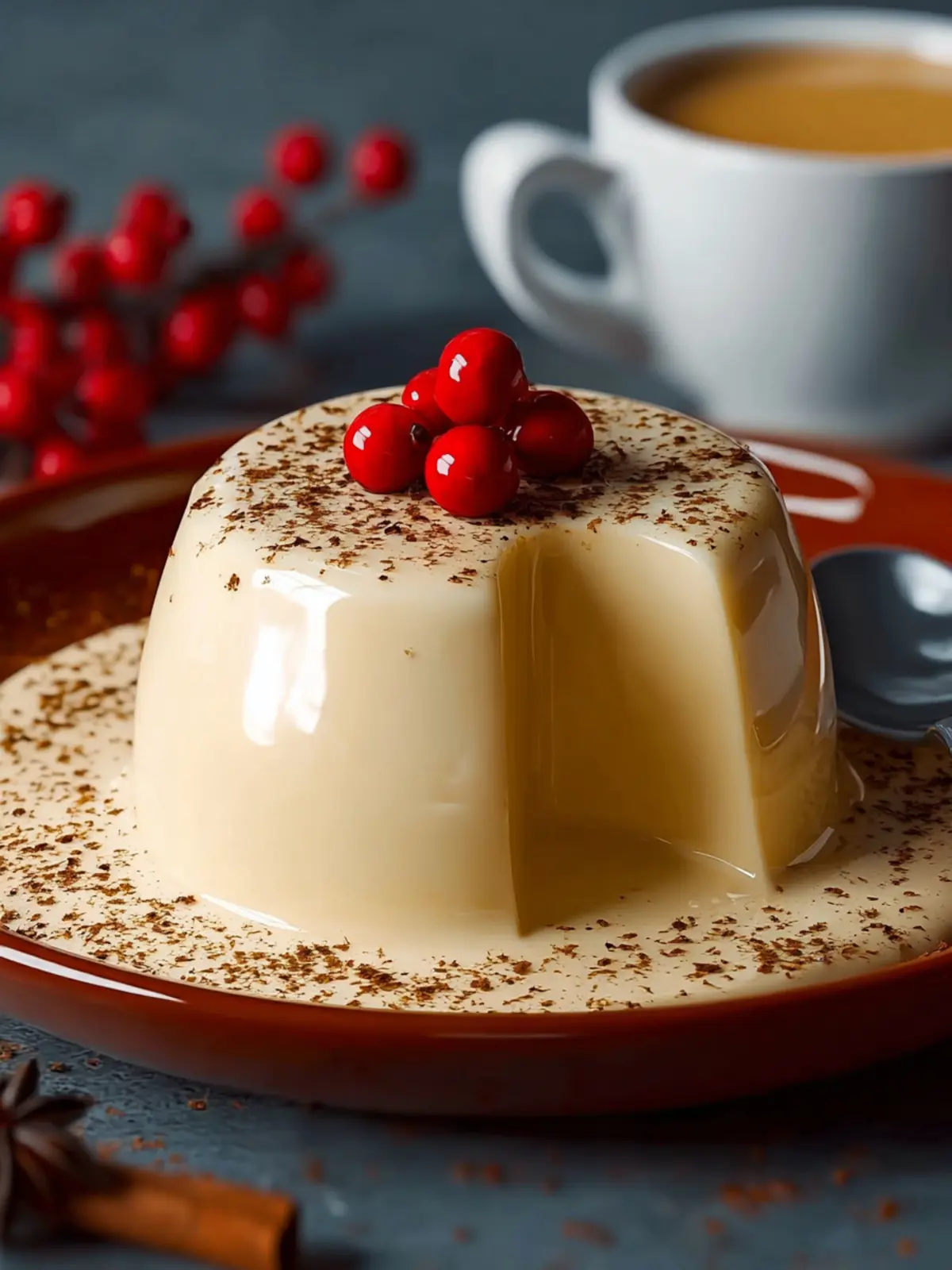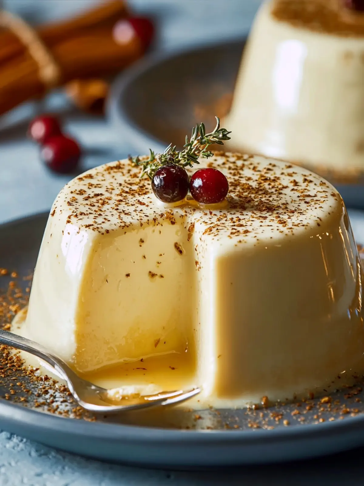 Nutmeg and Cinnamon: Finish your panna cotta with a light sprinkle of freshly grated nutmeg or ground cinnamon. The aromatic notes evoke holiday memories and enhance the flavor profile.