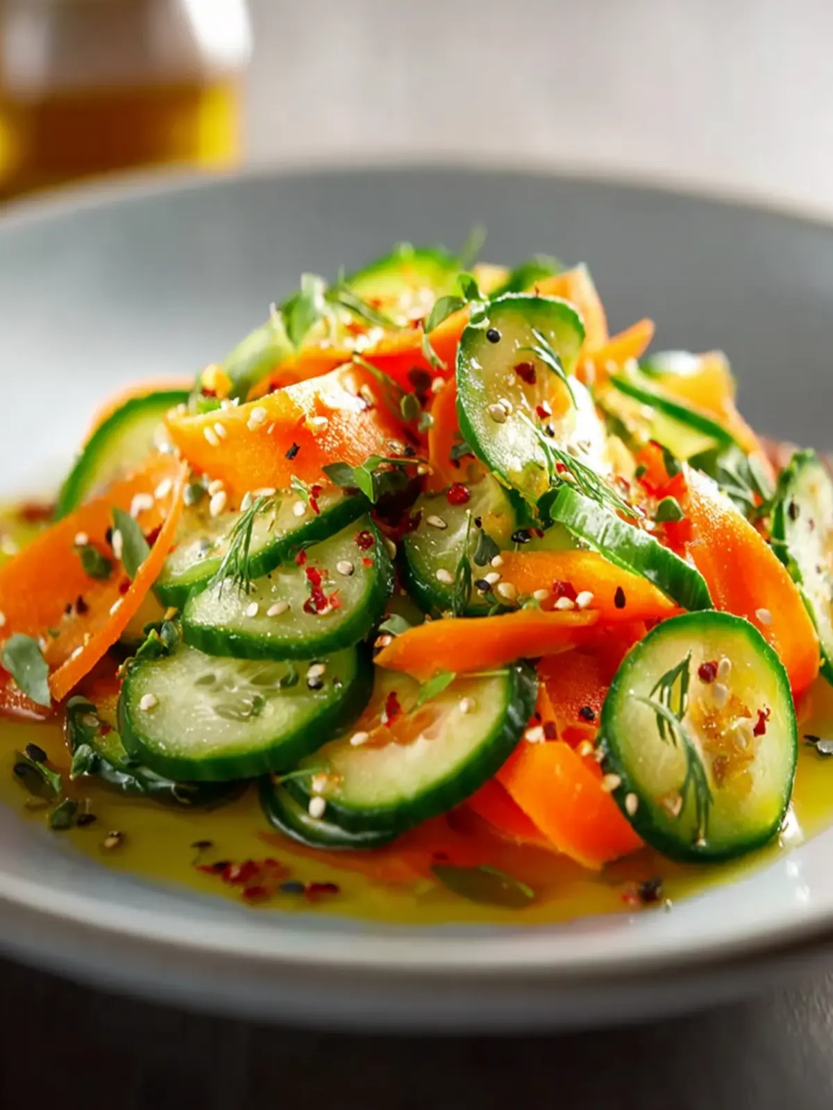 A light dressing is essential to tie your cucumber carrot salad together. A simple vinaigrette made with olive oil, vinegar, salt, and pepper works wonders. You can experiment by adding a splash of lemon juice or a pinch of sugar to balance flavors.