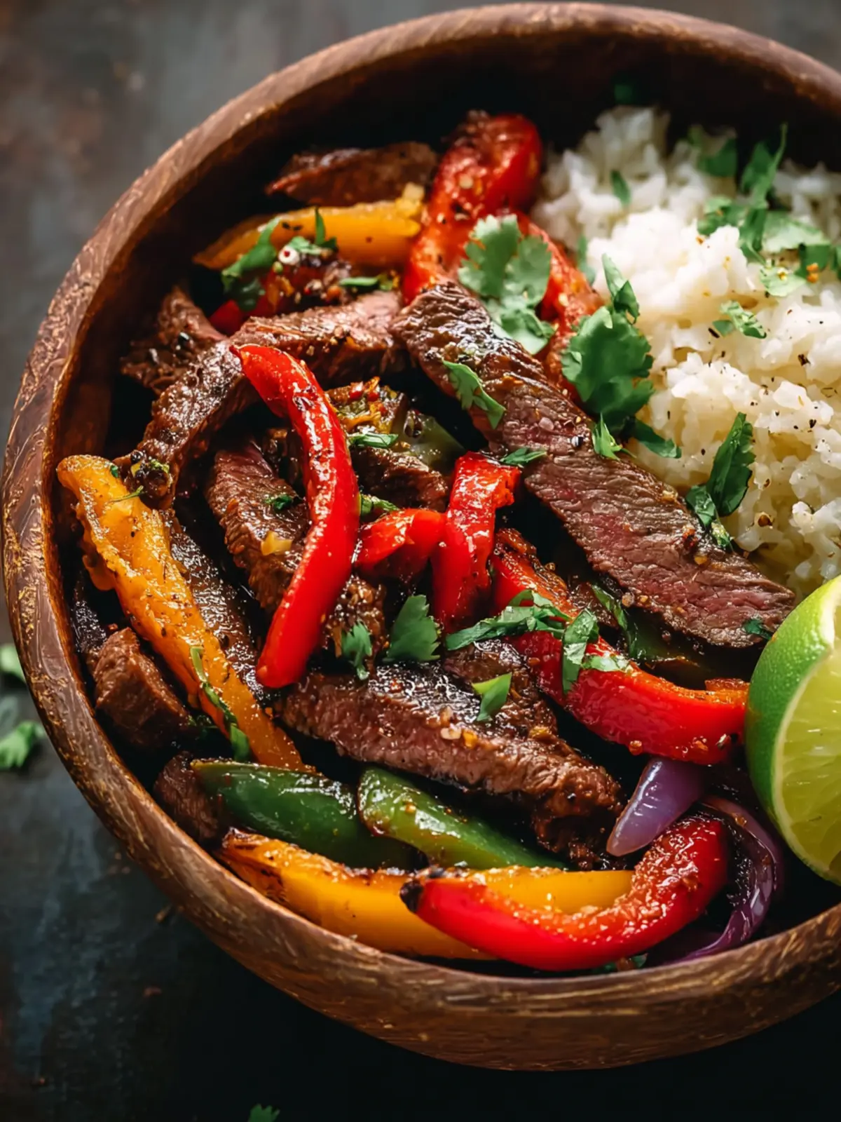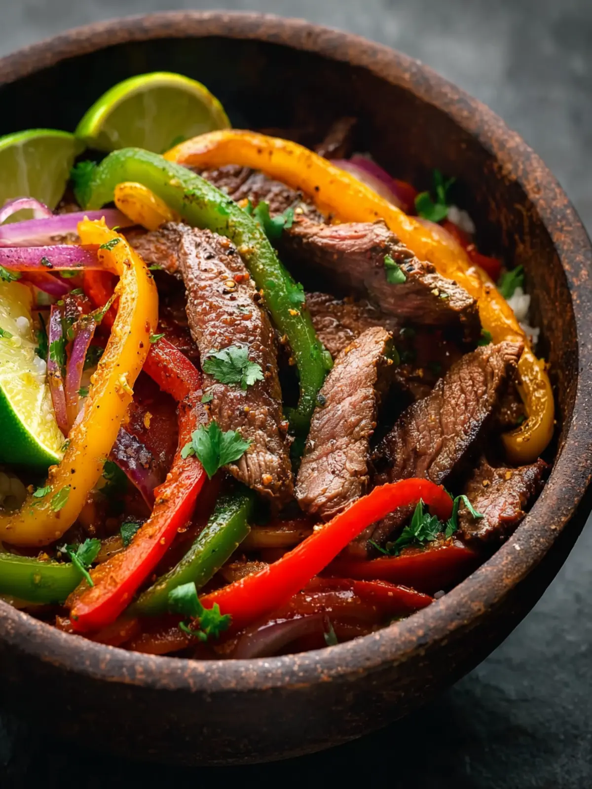 - Squeeze fresh lime juice over the steak and vegetable mixture and stir in chopped cilantro.