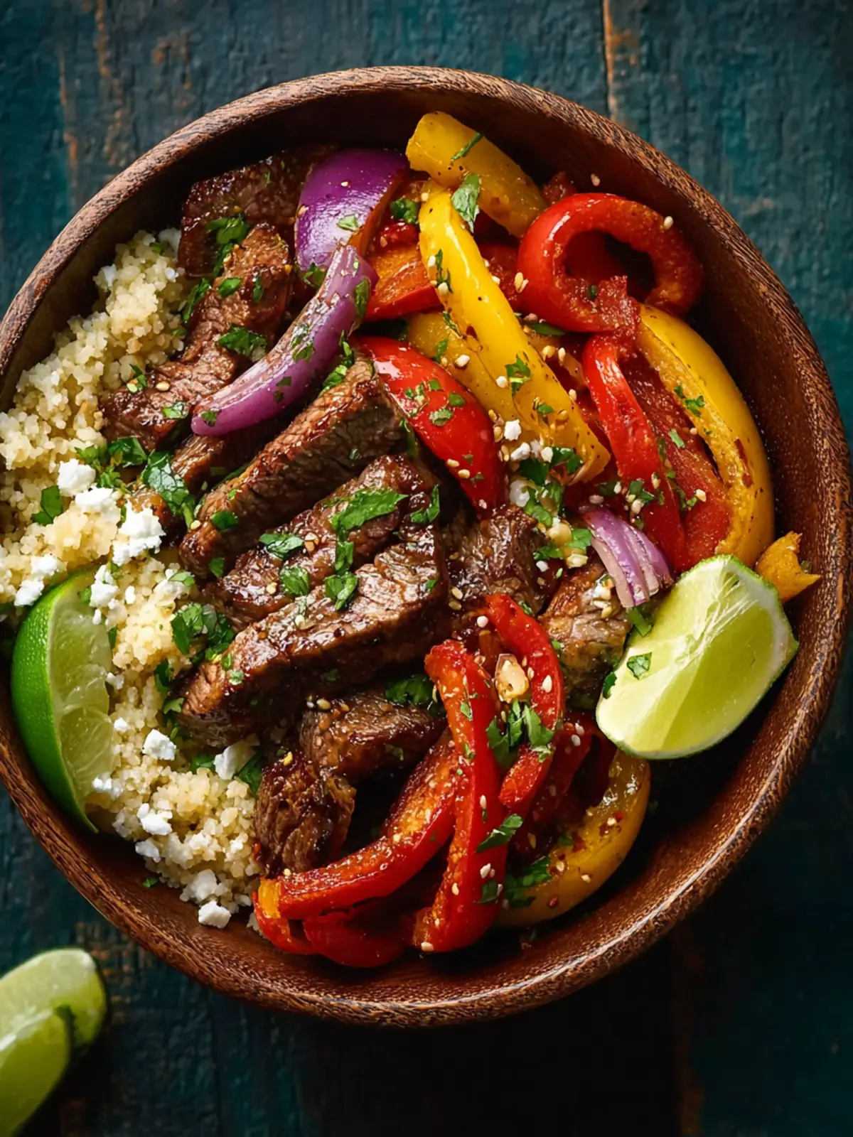 - Base Layer: Start with a bed of lettuce or cauliflower rice. This keeps your easy low carb steak fajita bowl light and refreshing.