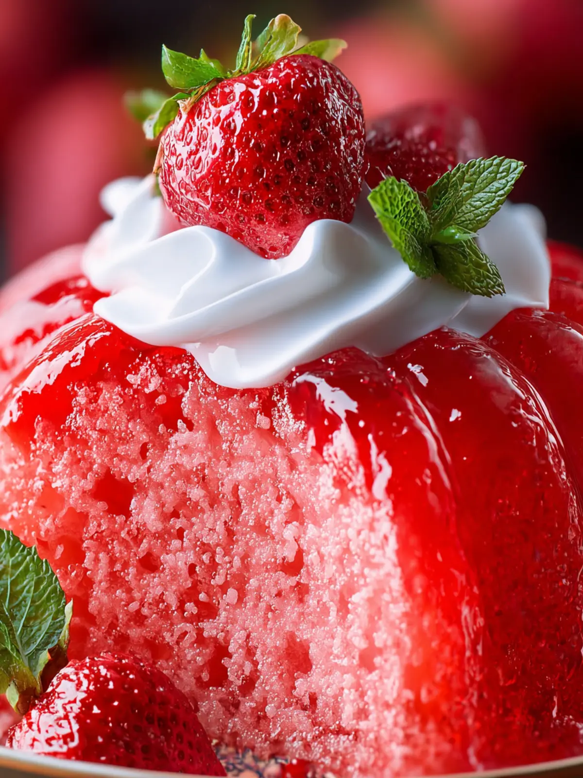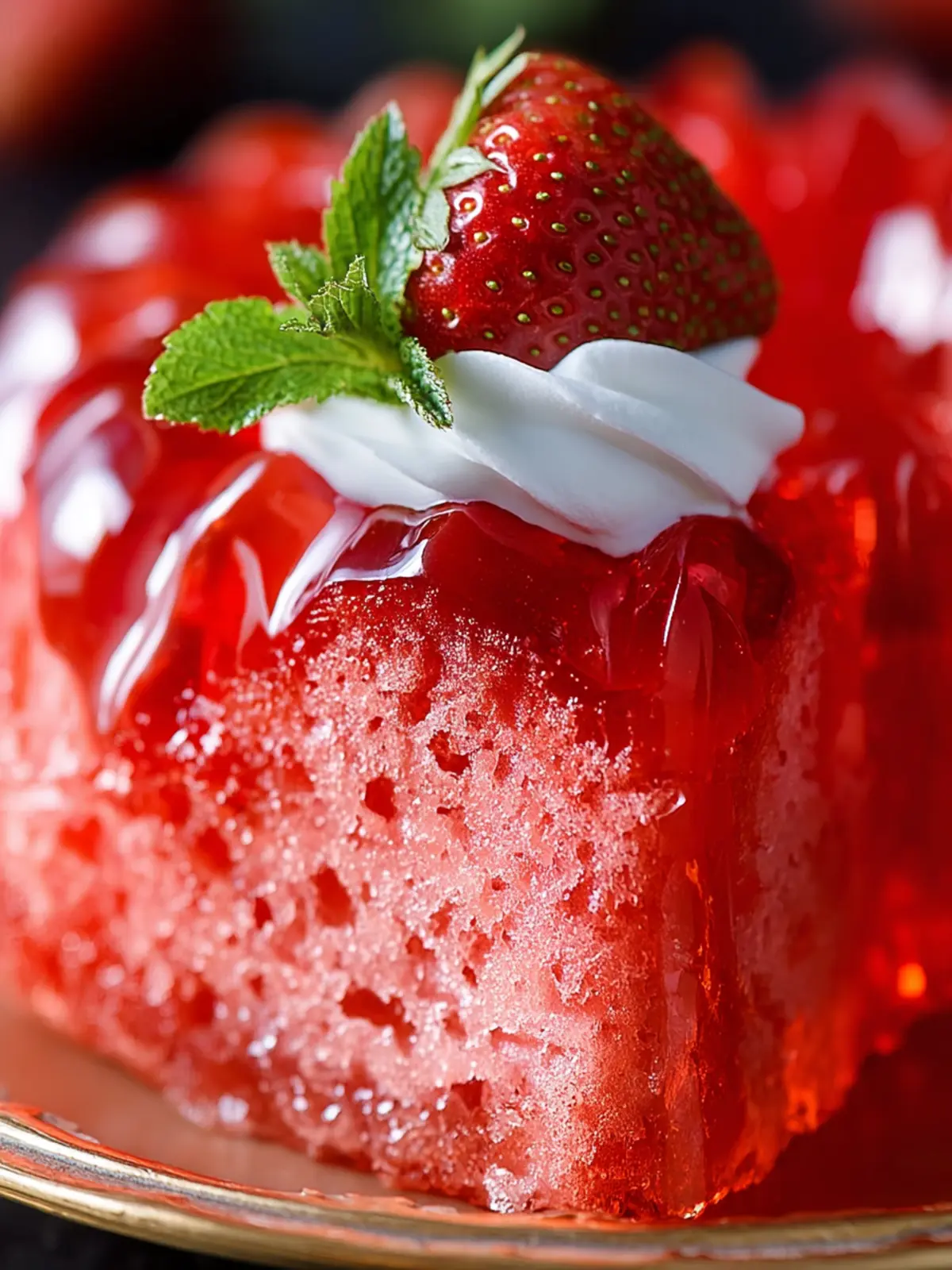 Versatile Delight: Whether you’re hosting a casual get-together or looking for a unique dessert to wow your friends, this strawberry jello cake does it all. You can serve it plain, or get creative with toppings and presentations, like fresh whipped cream or even a scoop of vanilla ice cream.
