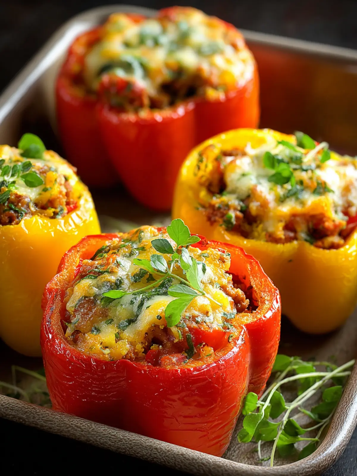 Savory stuffed bell peppers are not just a meal; they’re a delightful experience that brings together vibrant colors, rich flavors, and the comfort of home-cooked goodness. Picture this: after a busy day, you come home to the inviting aroma of peppers roasting in a tangy tomato sauce, filling your kitchen with warmth. The beauty of this dish lies in its versatility, allowing you to tailor the filling to your liking—be it savory ground meat, hearty grains, or a medley of fresh vegetables.