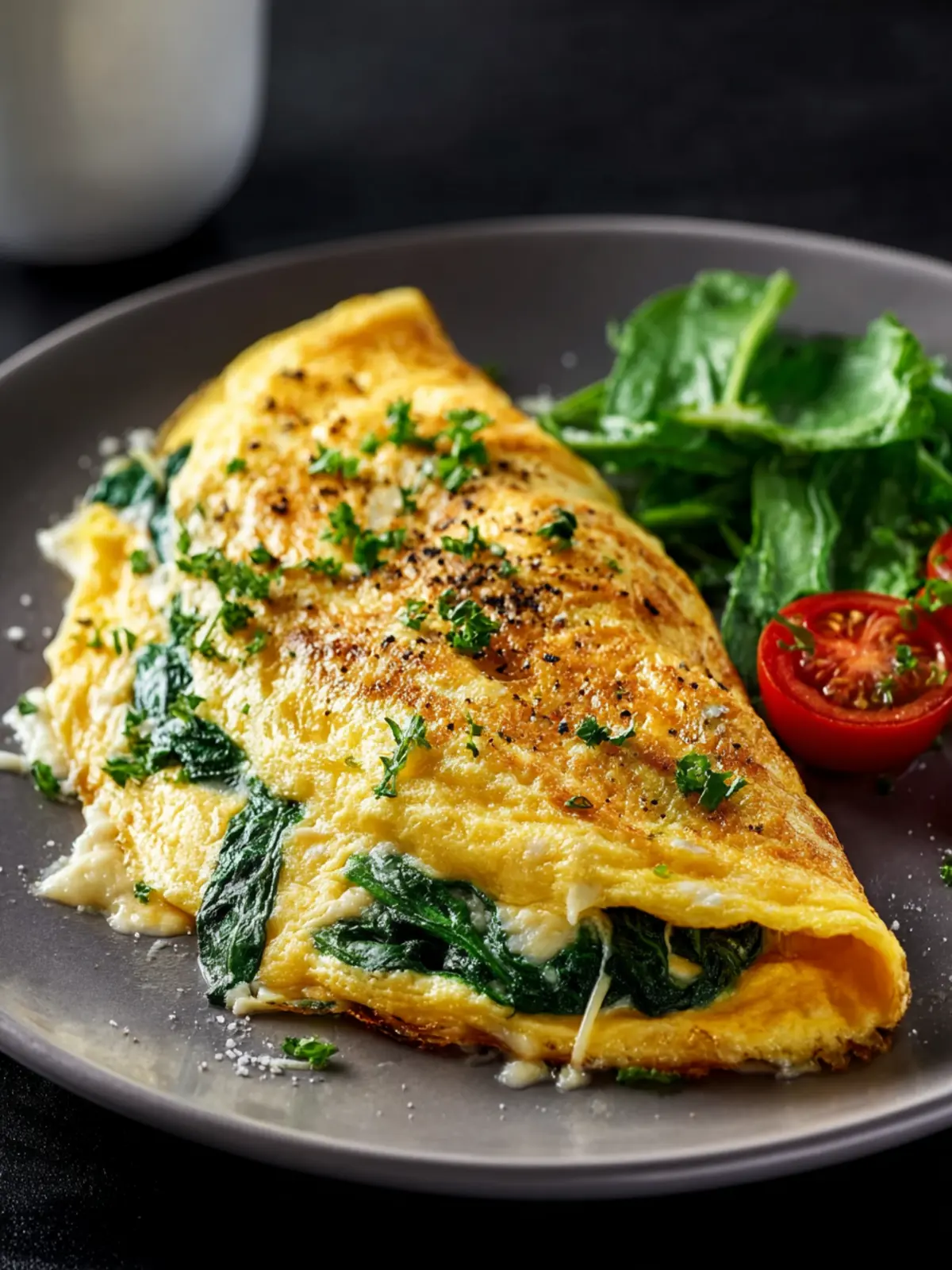 Fresh herbs like chives or parsley: To sprinkle on top of your spinach and cheese breakfast omelette, fresh herbs not only brighten the dish but also add a burst of flavor that takes it to the next level.