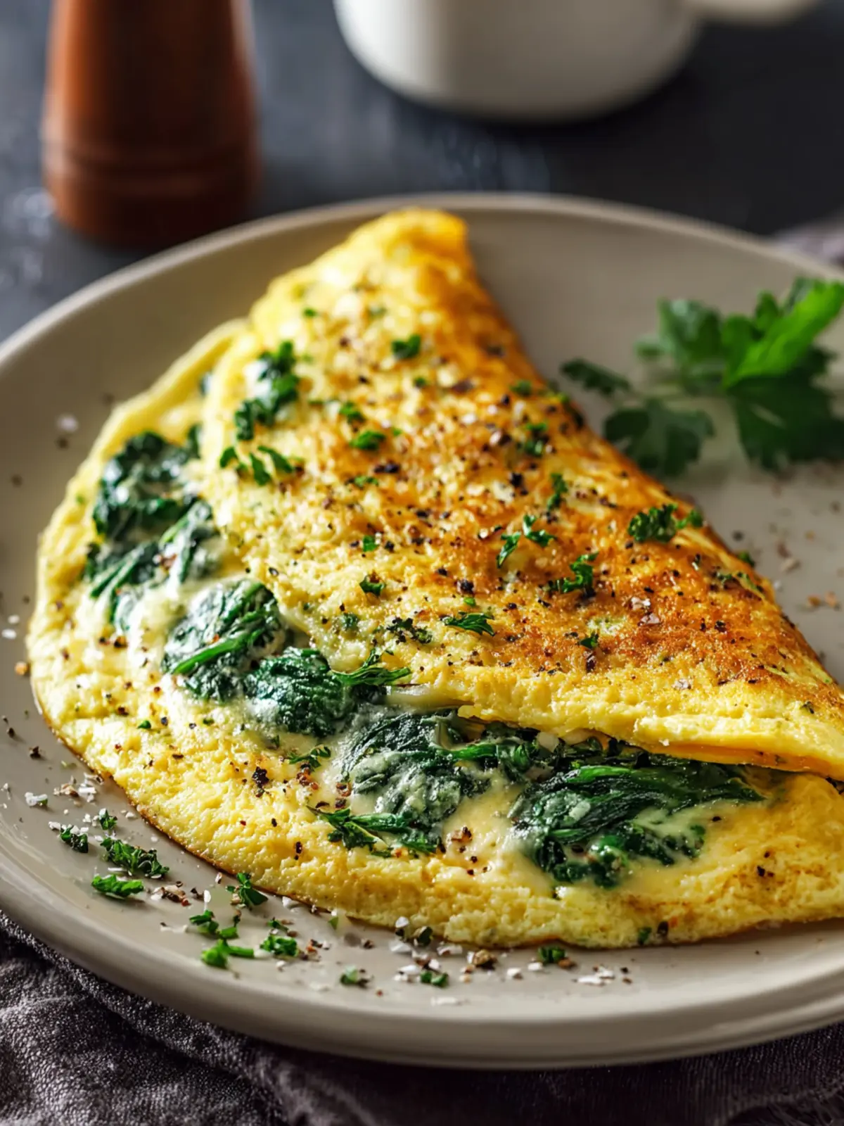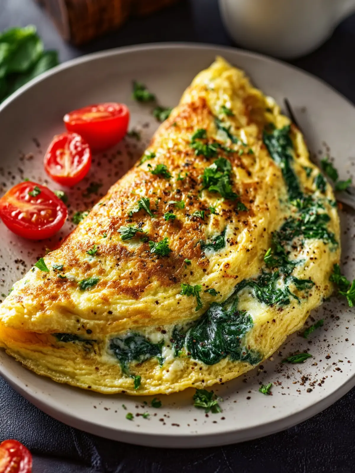 Presentation matters when it comes to enjoying your spinach and cheese breakfast omelette. Start by gently folding it onto a large, vibrant plate. Surround it with colorful cherry tomatoes and microgreens for a pop of visual appeal. A sprinkle of freshly cracked pepper and a few sprigs of parsley on top will not only enhance the look but add a lovely aroma as well.