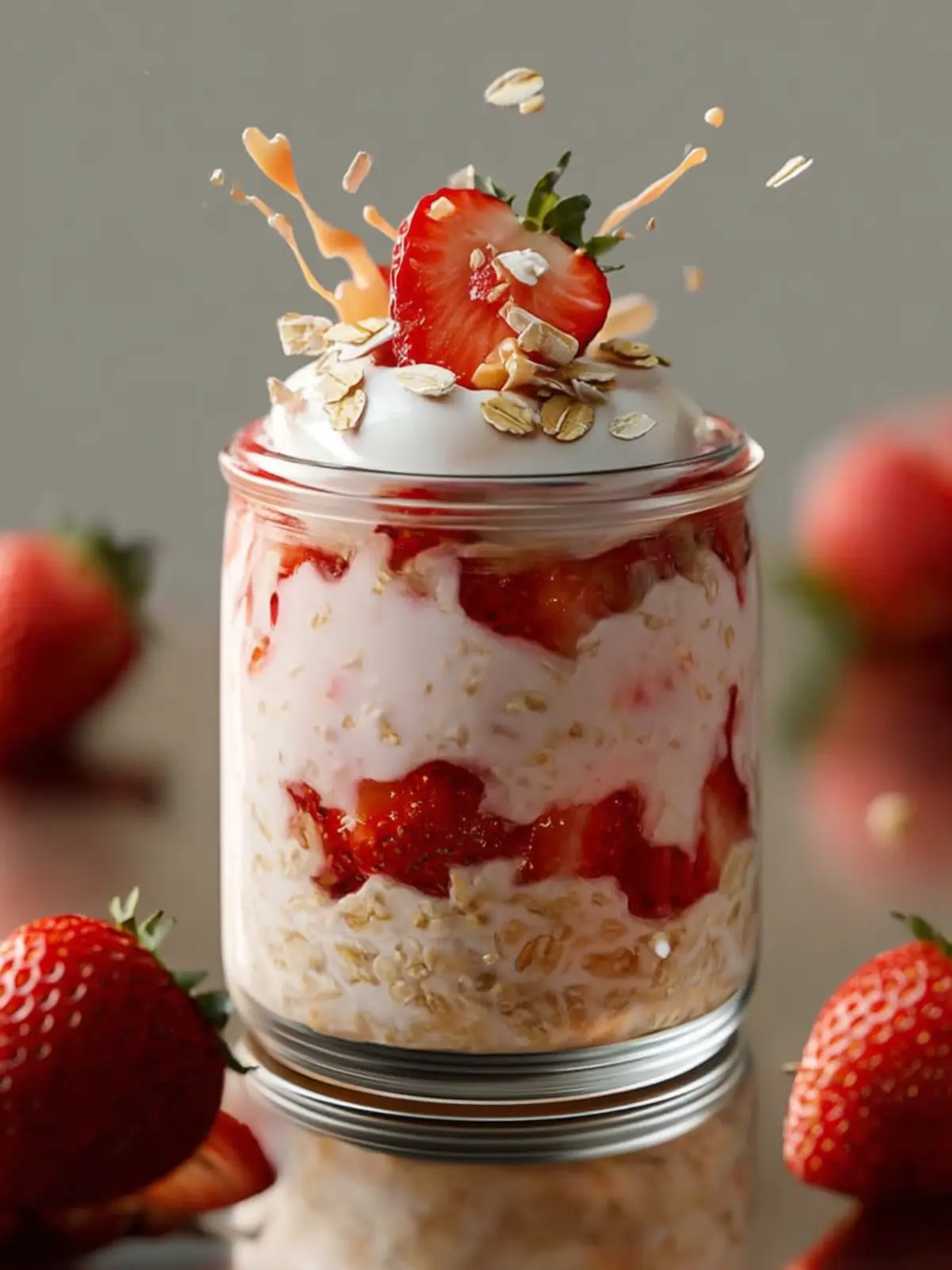 A delicious and nutritious breakfast option made with rolled oats, fresh strawberries, and creamy layers.